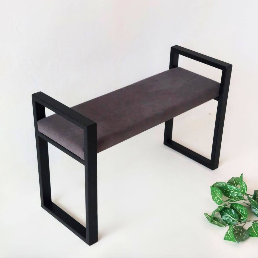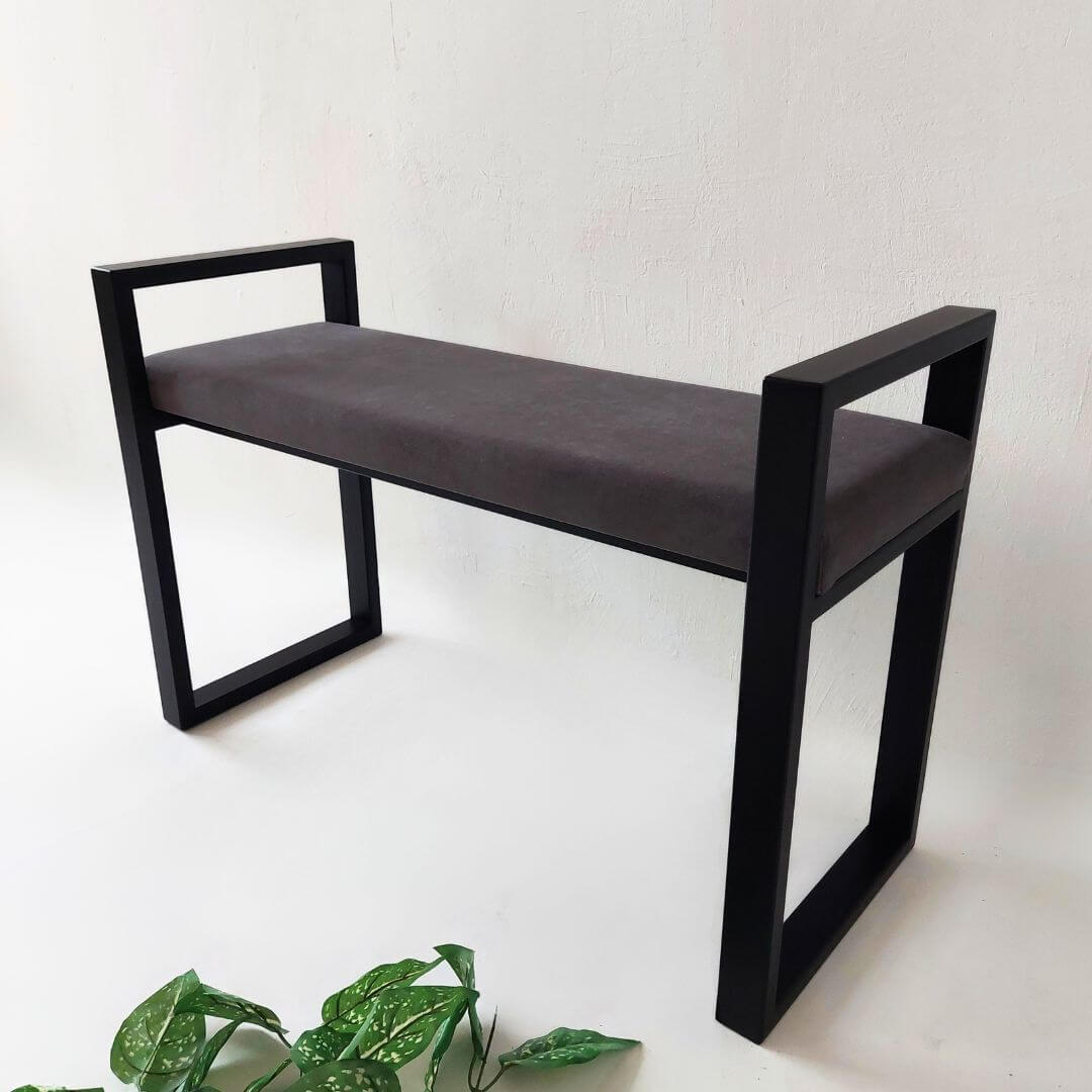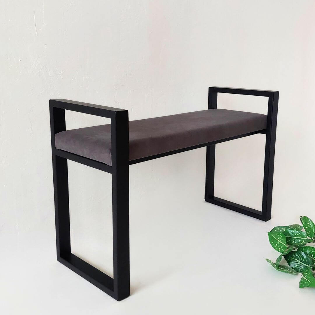 Modernus minkštasuolis prieškambariui URBAN – stilingas ir funkcionalus pasirinkimas šiuolaikiniam interjerui. Tvirtas juodo metalo rėmas su geometrinėmis rankenomis ir švelni sėdimoji dalis sukuria balansą tarp dizaino ir patogumo.