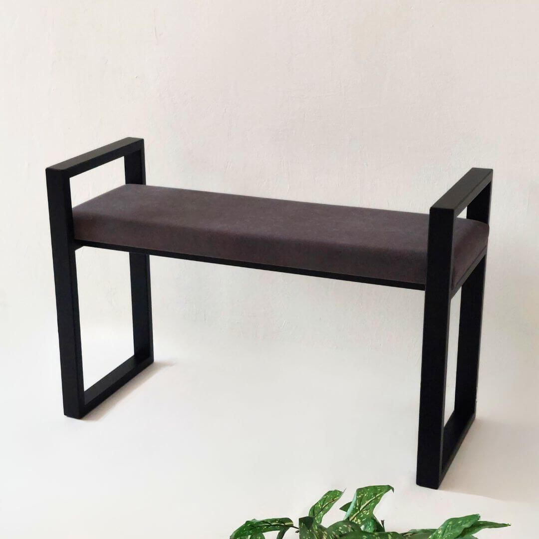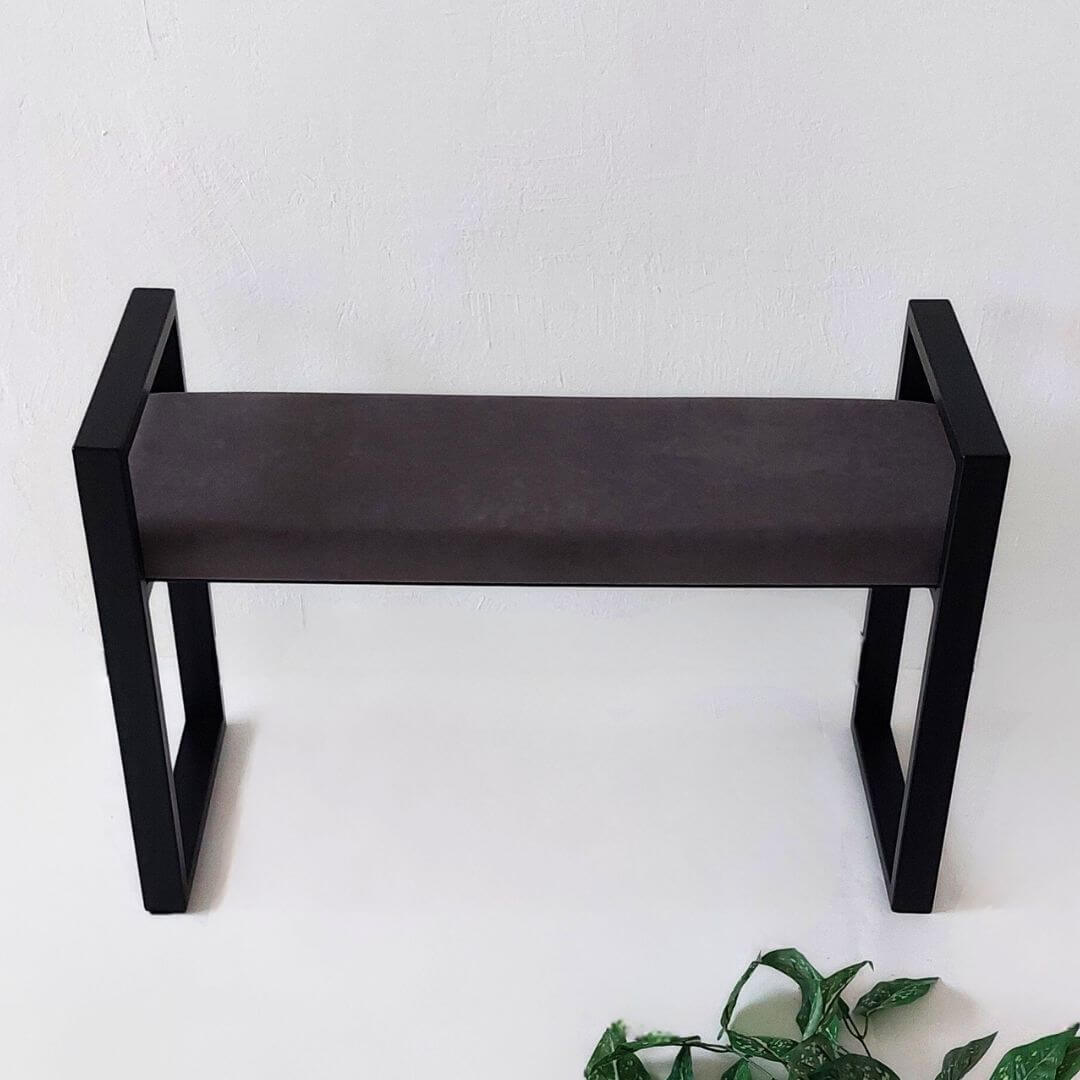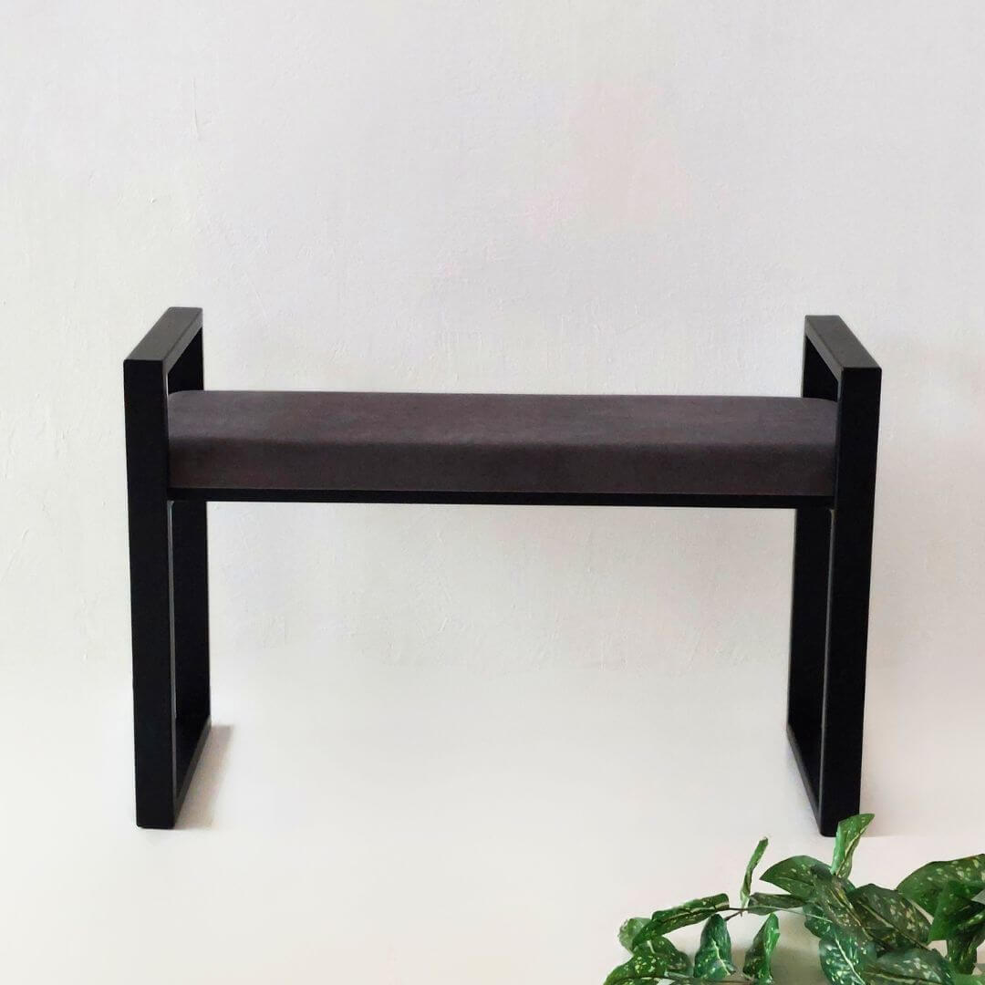 Modernus minkštasuolis prieškambariui URBAN – stilingas ir funkcionalus pasirinkimas šiuolaikiniam interjerui. Tvirtas juodo metalo rėmas su geometrinėmis rankenomis ir švelni sėdimoji dalis sukuria balansą tarp dizaino ir patogumo.