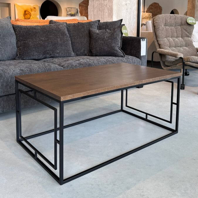 Patvarios medžiagos: Tvirtas natūralaus ąžuolo stalviršis atsparus kasdieniam naudojimui ir lengvai valomas, o metalinis rėmas suteikia staliukui stabilumo.